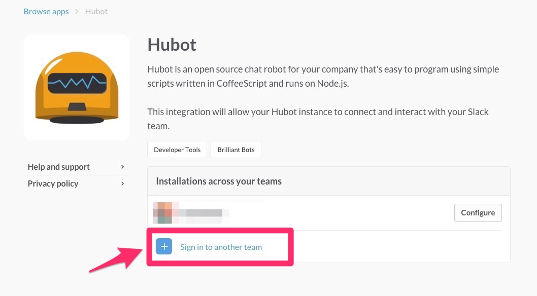 5. slackチャンネルにhubotを追加する