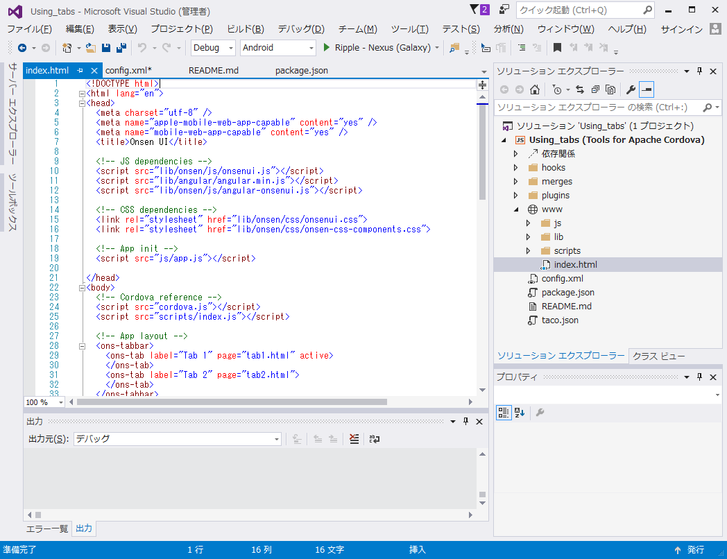 OnsenUIのテンプレートからCordovaプロジェクトをダウンロードし、Visual Studio 2015にインポートしてビルドする手順についてまとめました。
