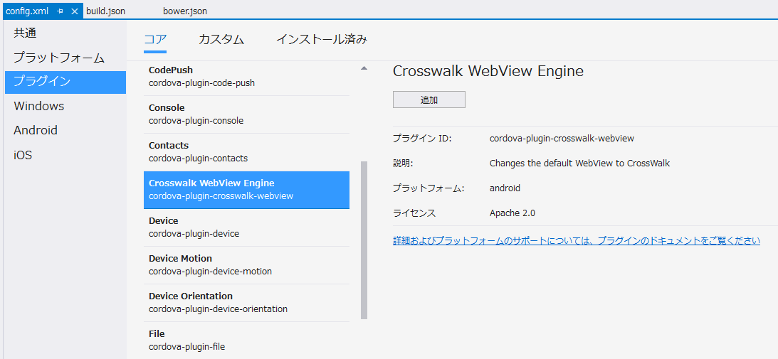 Visual Studio2015では、Cordovaプロジェクト単位でプラグインを簡単にインストールする機能が備わっています。
