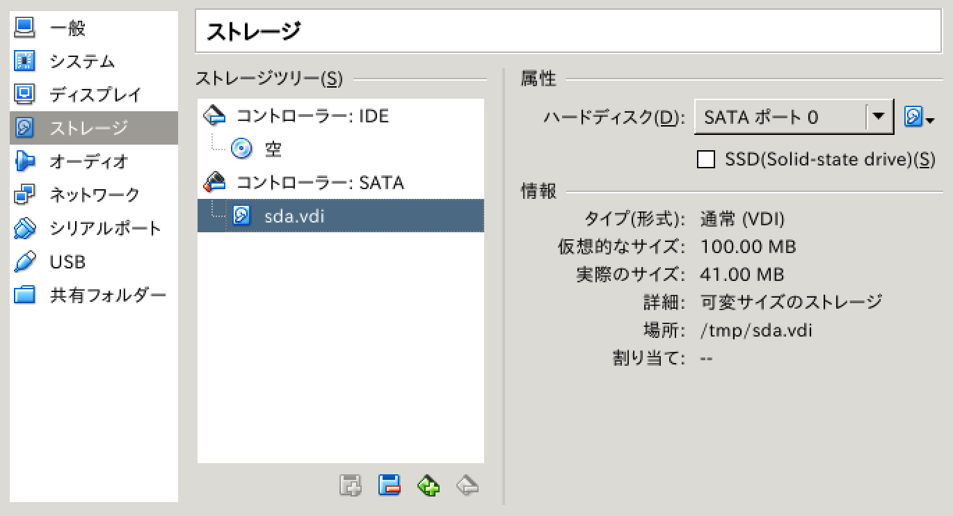 $ cd [作業ディレクトリ] $ dd if=/dev/zero of=sda.raw bs=1M count=100 |