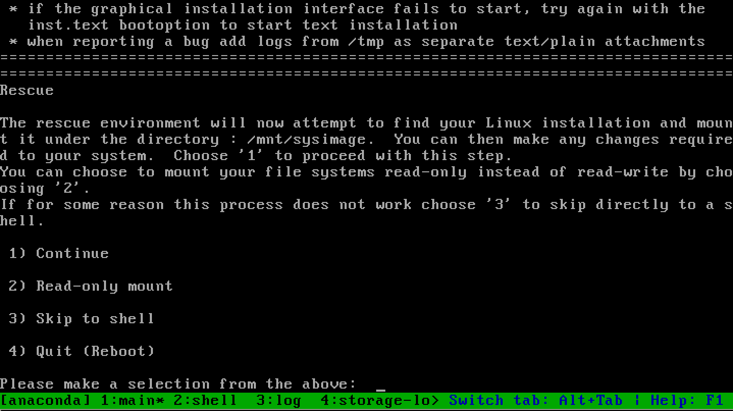 起動が完了すると以下のメニューが表示されるので、「3) Skip to shell」を選択してシェルを