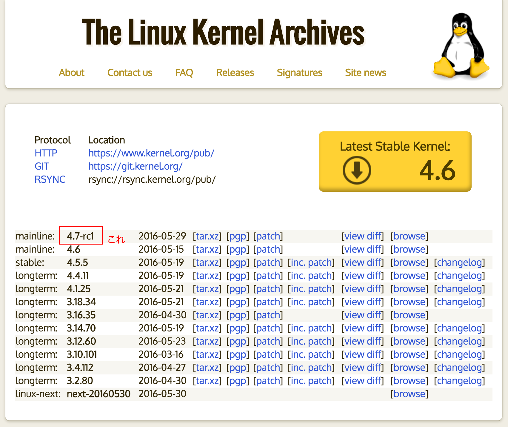 ちょうど執筆時点(2016/05/31現在)では4.7-rc1というリリース候補版がありますので、