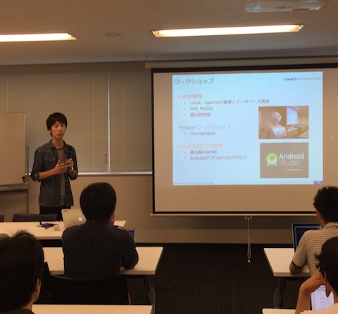 5月にGTBでの研修がスタートし、前半の1ヶ月間は座学や基調講演としてインターネットやWebサービスの歴史、ビッグデータやセキュリティについて学び、後半の1ヶ月間はワークショップとしてLAMP開発やAndroidアプリの開発を行いました。
