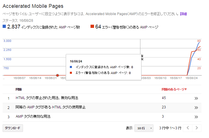 ちなみにエラーについても同様に、修正してもすぐには反映しませんので、これもまた気長に待ちましょう。