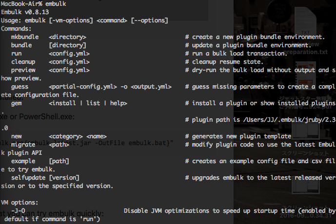 では実際にembulkコマンドを叩いてみます