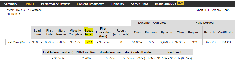 「Speed Index」は可視範囲内での表示速度の平均値を測る指標です。つまりファーストビューでの表示速度を表しています。「Speed Index」はスコアが低ければ低いほど描画が早いということになります。今回の目標としている体感的な表示速度改善の指標として一番合っていました。