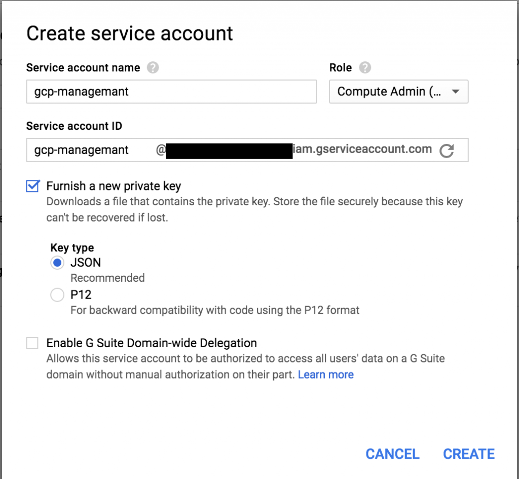 $ gcloud auth activate-service-account gcp-managemant@example.iam.gserviceaccount.com --key-file /path/to/gcp-managemant-key.json $ gcloud config set project example-project |
