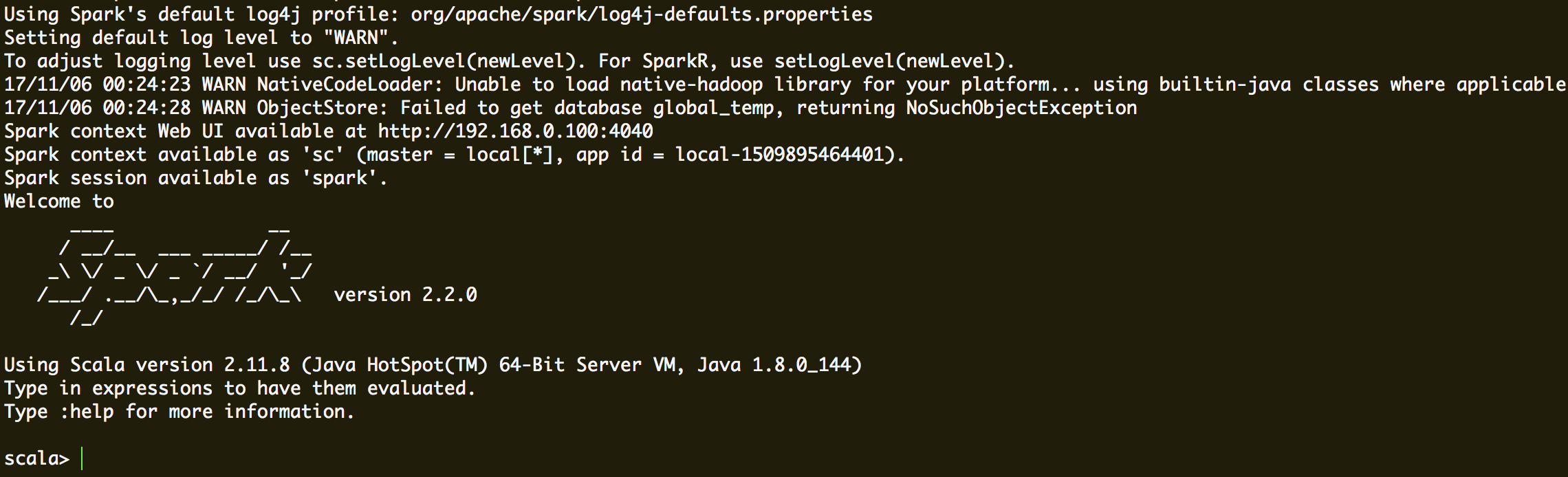 SparkのShellを起動すると下記の画面を確認することが出来ます: