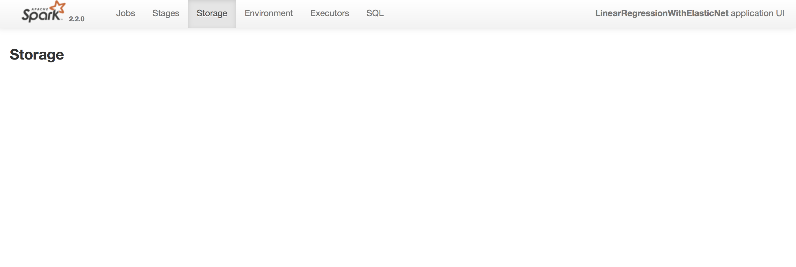 Storageで当InstanceのStorageの状況を確認できます。今回のSample CodeではRDDの詳細はないのでStorgeの詳細画面はBlankになりました(図7)。