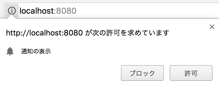 これで、通知の受信許可の確認と、許可された場合はトークンを取得してコンソールに出力することができるようになります。ブラウザで対象ページにアクセスして、受信許可をして、取得したトークンを手元に控えます。プッシュ通知を実行する際に使います。