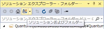 「ソリューション エクスプローラー」の上段にあるアイコンの左から4番目(ソリューションおよびフォルダ)をクリックすると、その下のペインが「フォルダ」表示から「QsharpLibraries」ソリューションの内容に切り替わる。