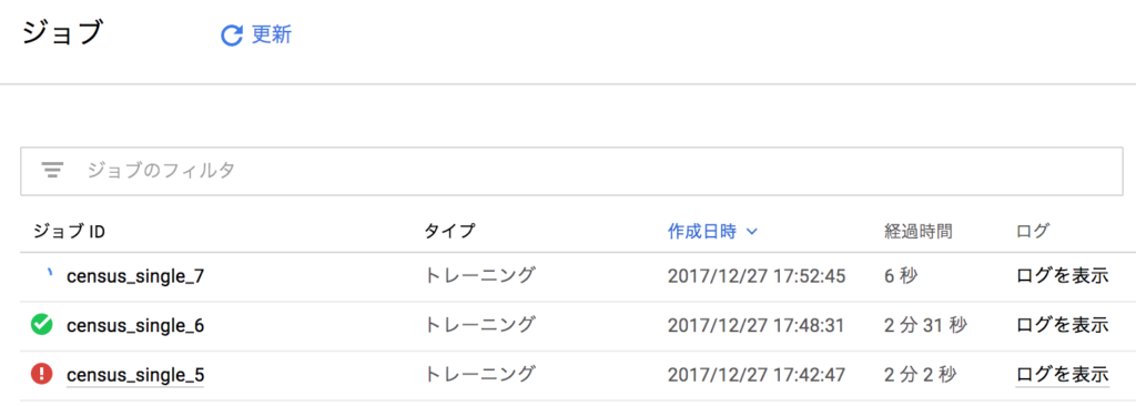 また、他のジョブと同様にGCPコンソールのジョブ一覧でも状況は確認することが出来ます。