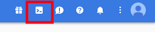 Google Cloud Platformのコンソール(GCPコンソール)にアクセスをして、右上にある以下のアイコンをクリックしてCloudShellを起動します。