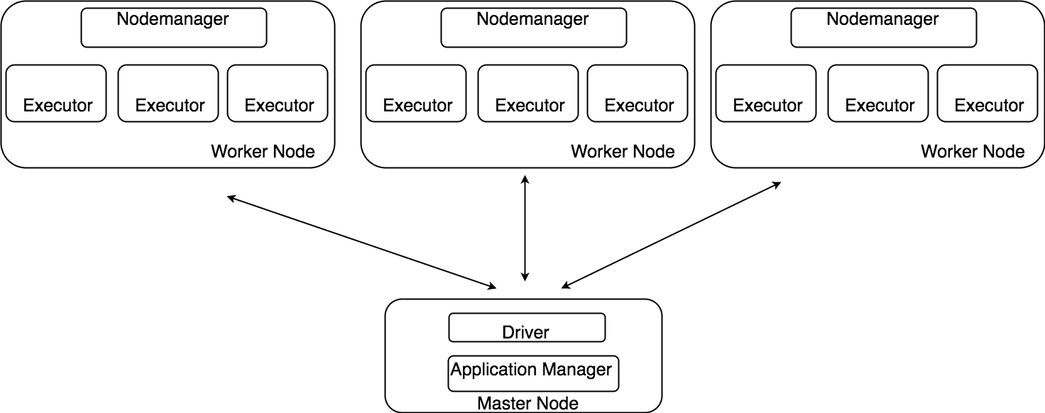 ClusterモードはSparkのApplication ManagerはMaster Nodeで動作し、ClientモードではApplication ManagerはWorker Nodeで動作します。
