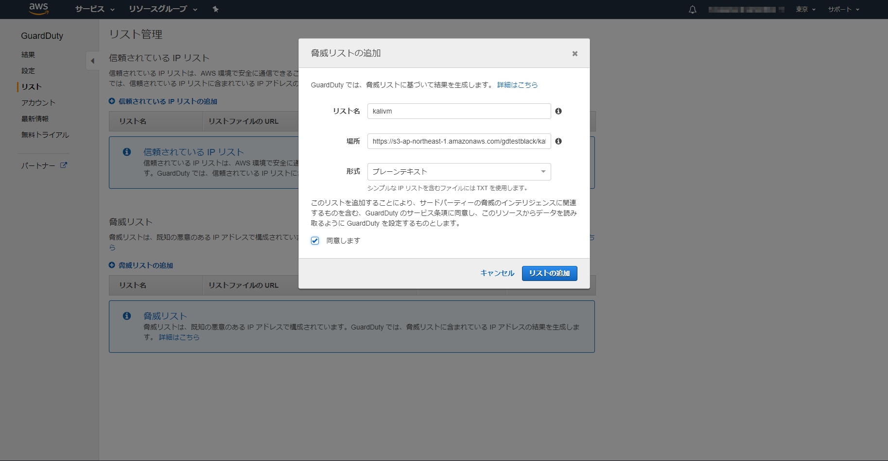 AWS GuardDutyのコンソールから登録が可能です。