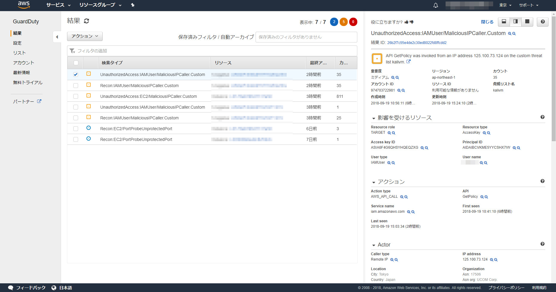 こちらはS3バケットに対しての攻撃を検出してくれます。