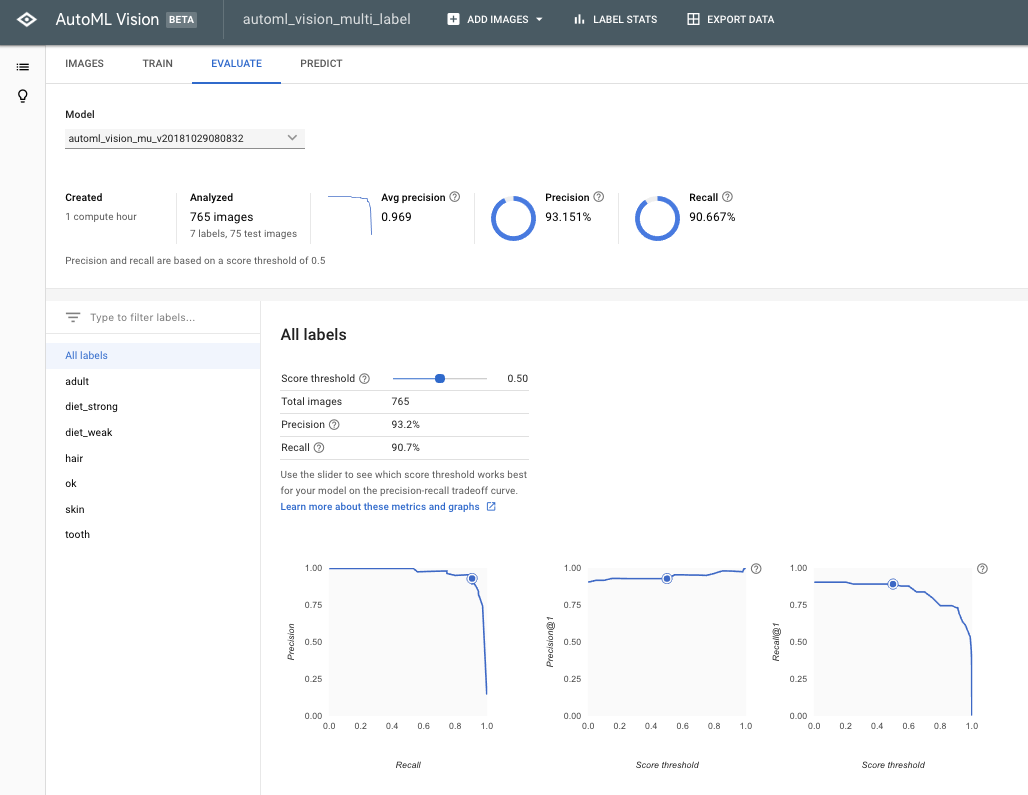 Googleはモデル作成後、モデルの精度をビジュアライズしてくれます。