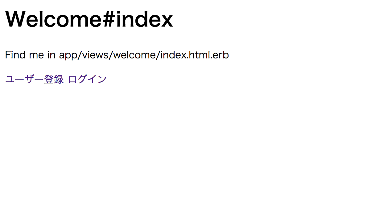 まだログイン画面へのリンクがないので、app/views/welcome/index.html.erb を編集しておきます。