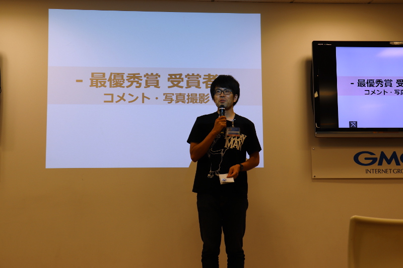 最優秀者を表彰し、金券が贈られました。上の写真は受賞後のコメントシーンの様子です。