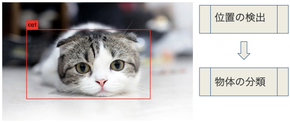 物体検出とは、入力画像から指定された物体の位置とカテゴリーを検出することを指します。