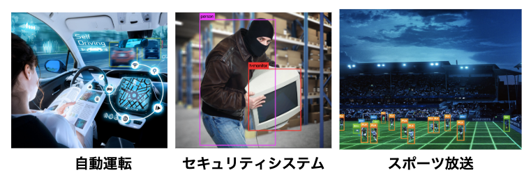物体検出は自動運転、セキュリティシステム、スポーツ放送など様々な領域に利用されています。