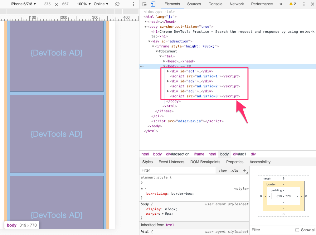2. アドサーバーに入れた広告が期待通りに展開していない (Elements/Network)
