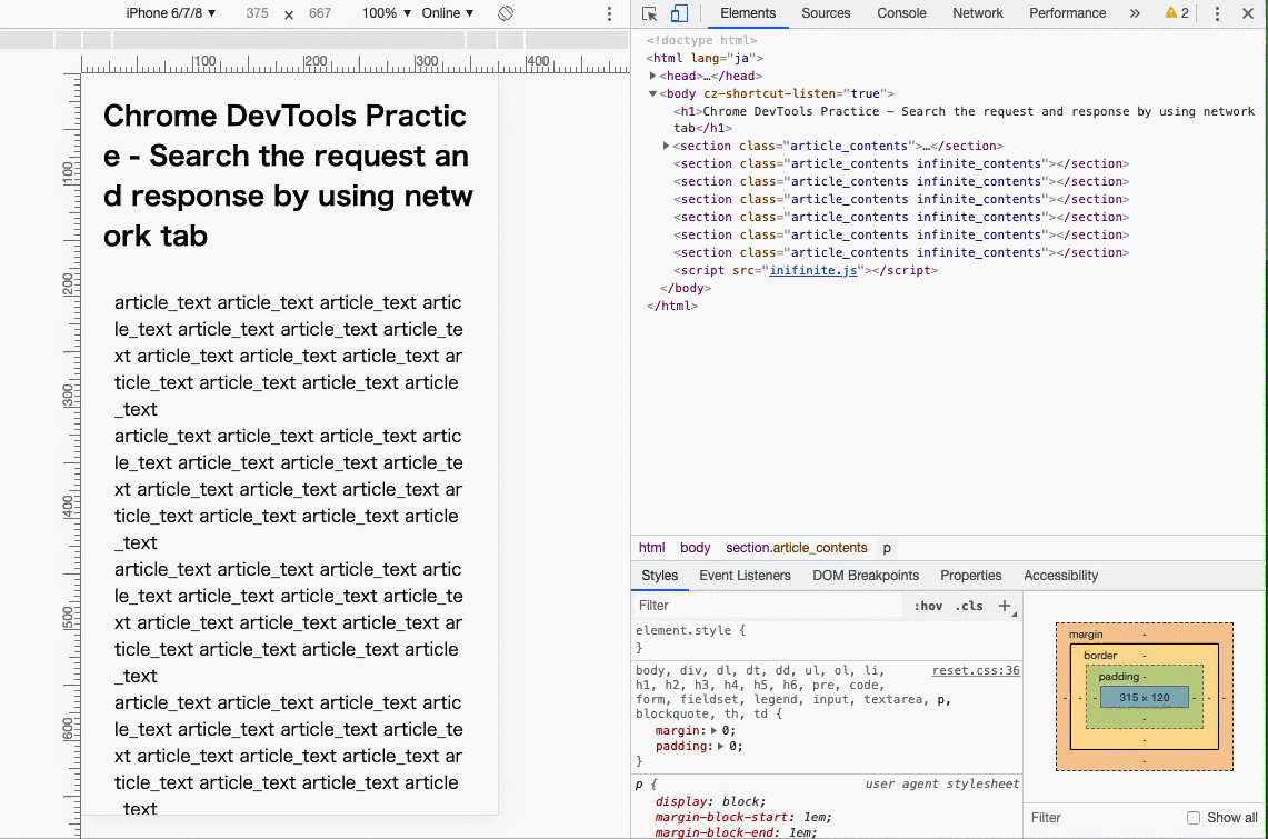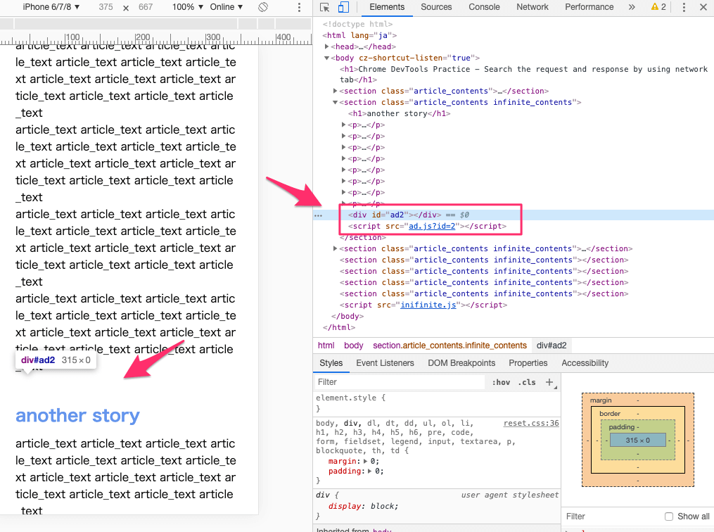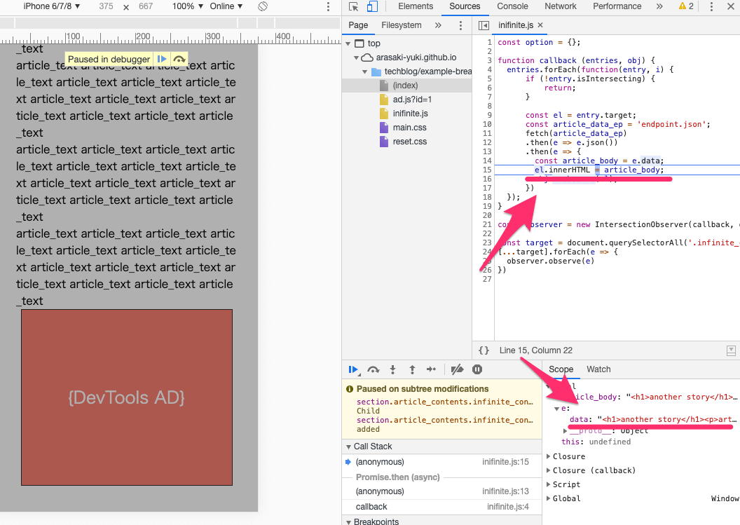 - インフィニティスクロールコンテンツの表示不具合(Elements/DOM Breakpoints/Breakpoint)