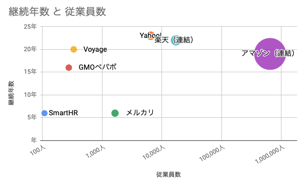 - 大企業(設立15年〜、従業員10,000名)… Yahoo!、楽天(連結)