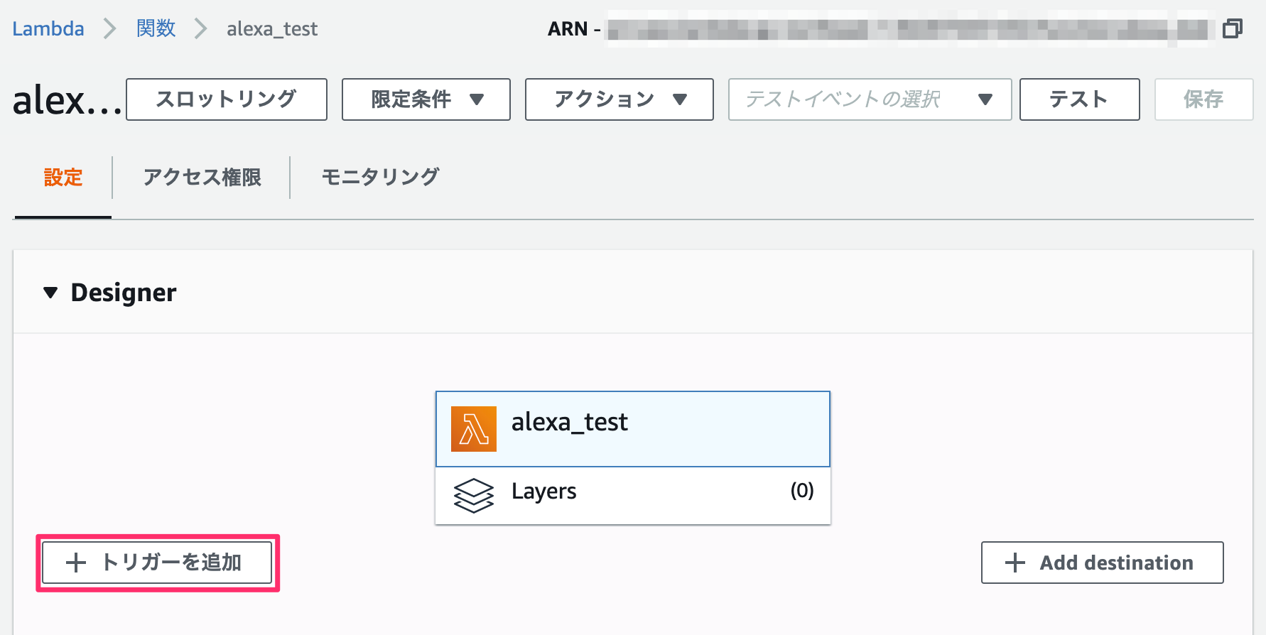 最後にAlexaのエンドポイントに今回作成したLambdaのARNを記入します。