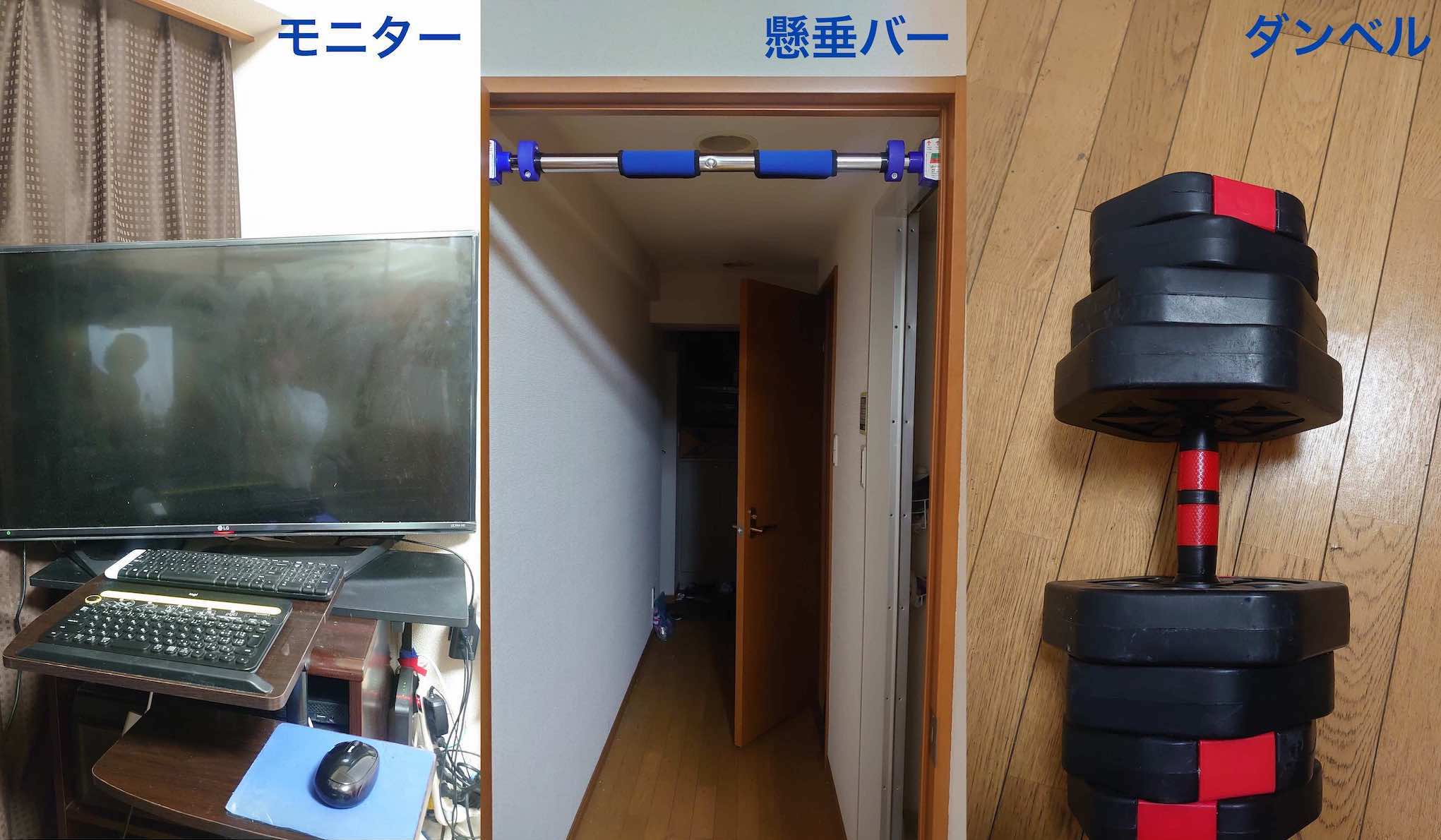 • 自宅ではダンベルと懸垂バーを購入して筋トレに取り組んでいる