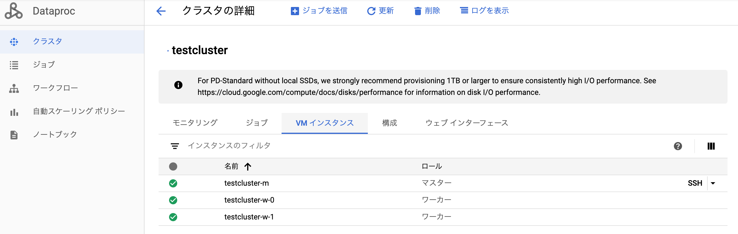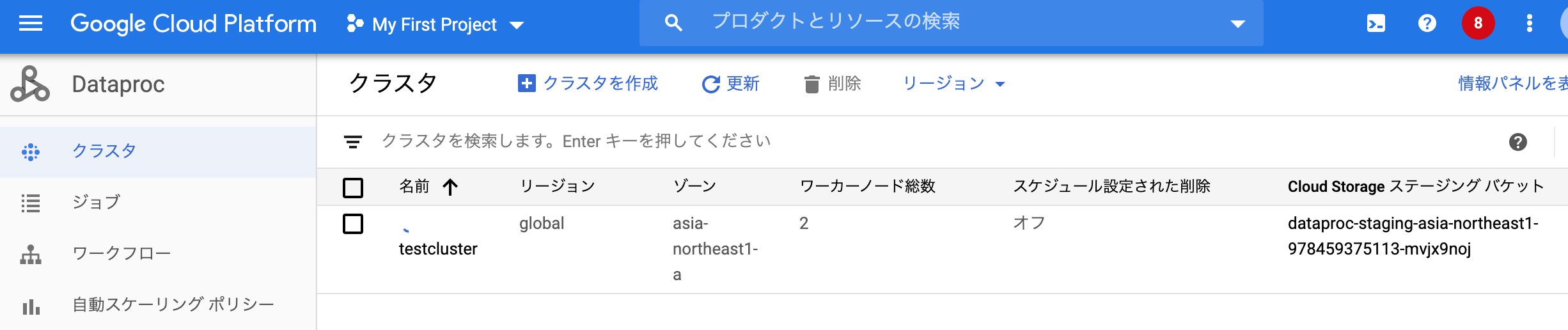 ・実行されるDataProcのスペック確認(cluster.jsonのcluster_nameと一致)