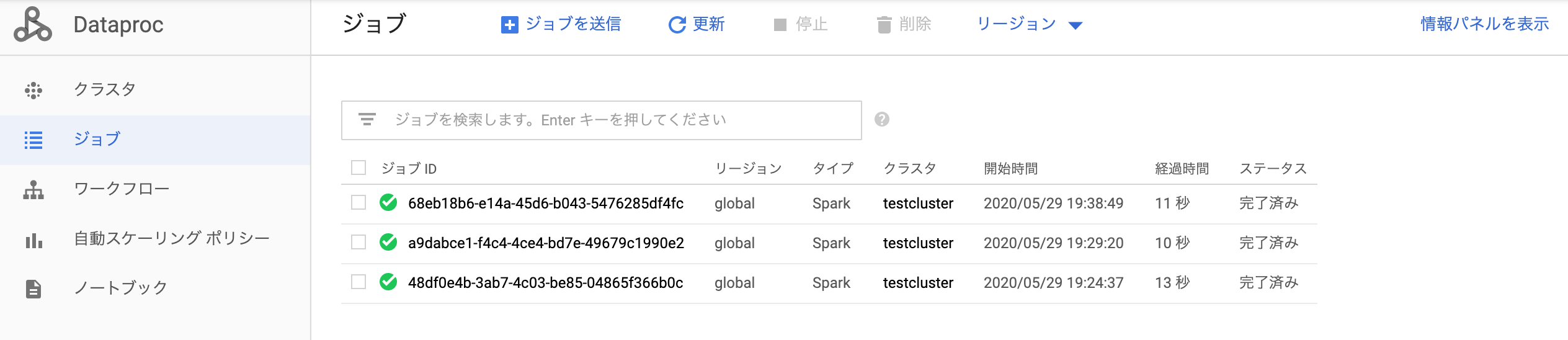 これで通常は、cluster.jsonに指定したスペックで処理を行い、何か問題があった時はCurlでDataprocのスペックやバッチのオプションを自由、楽に変更しながら運営できるようになります。