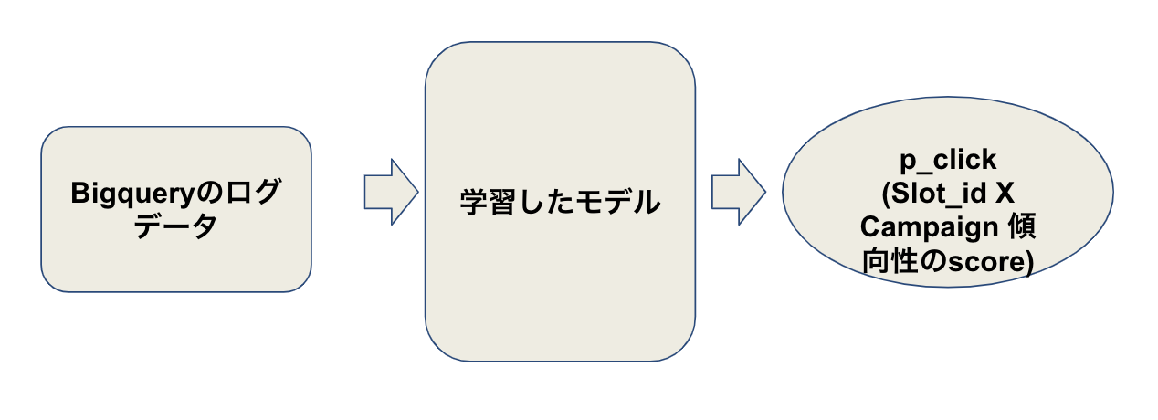 課題の要件はシンプルです。当社のアドネットワークのログから学習データを用意して、指定されたユーザーに対して指定された広告がクリックされる確率を予測することです。