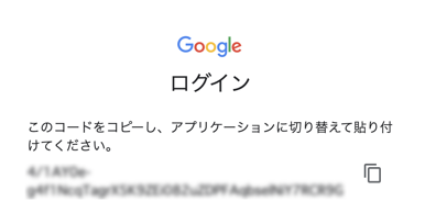 ログイン画面に、認証用のコードが表示されるのでコピーします。