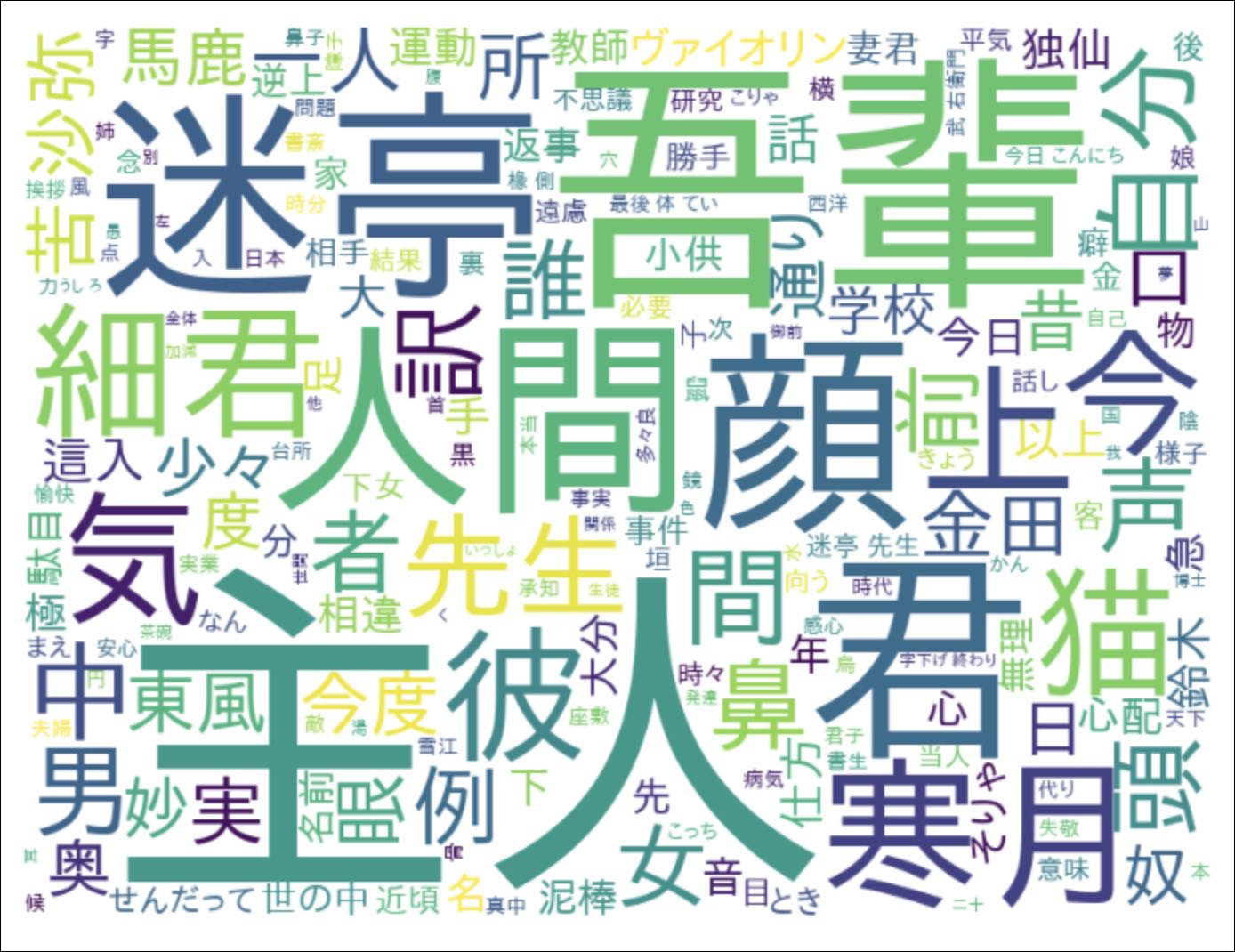 実行結果は以下のようになりました。吾輩や猫が含まれています。