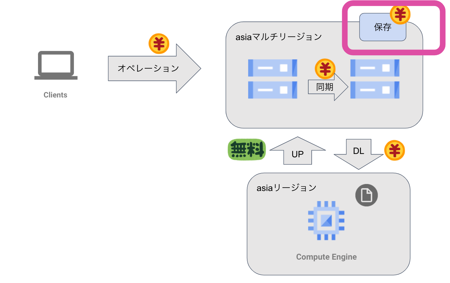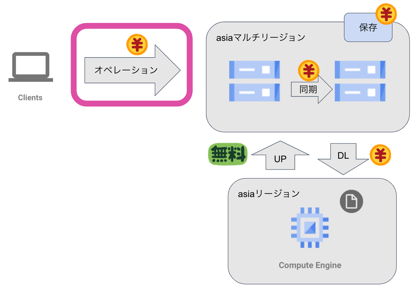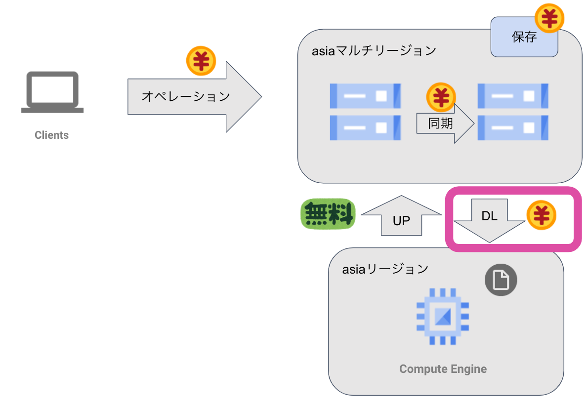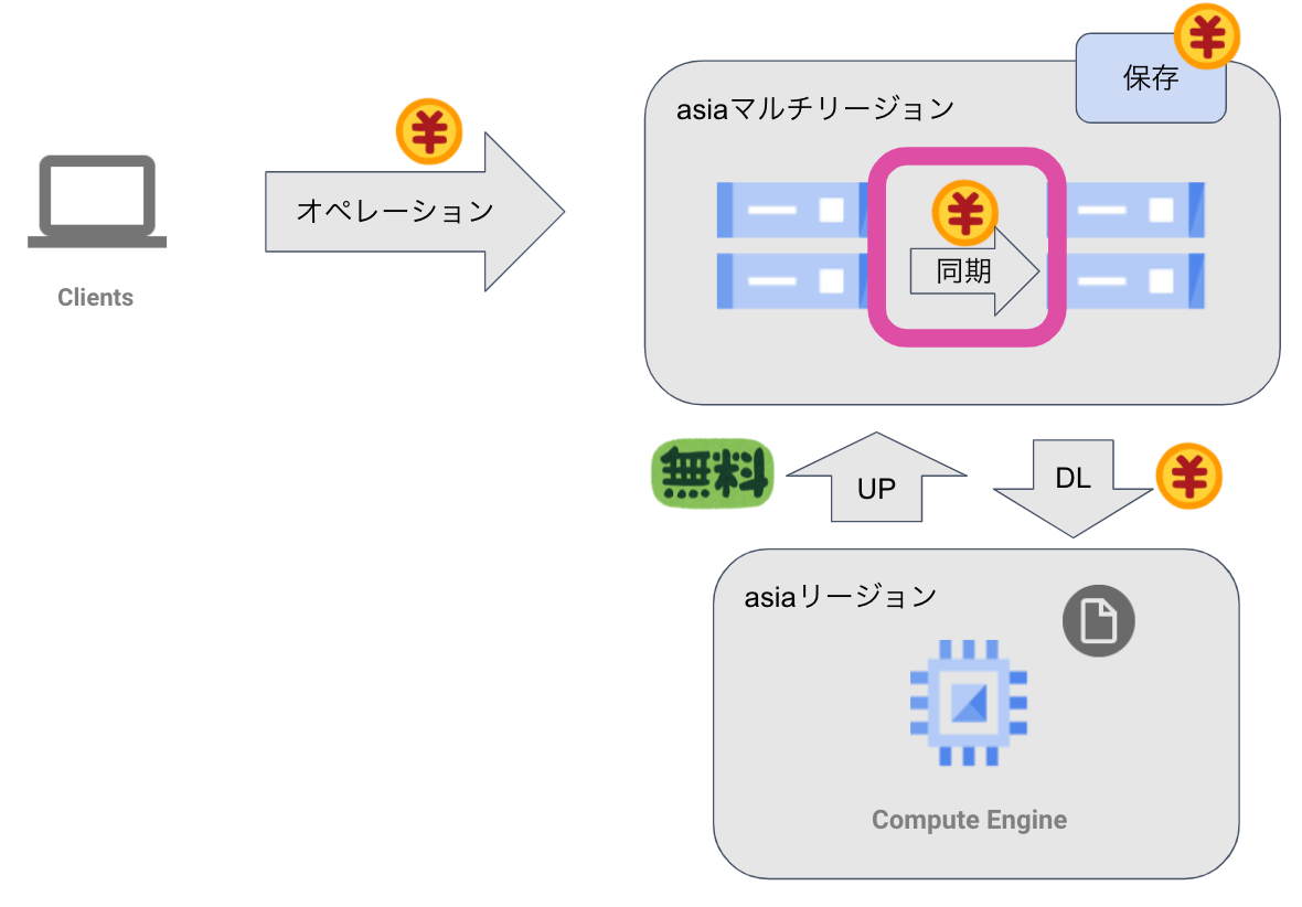 改定前は同じ大陸内でのマルチ/デュアルリージョンからの下り(外向き)トラフィックに関しては課金されませんでしたが、改定後は$0.08/GB(asiaリージョンの場合)かかるようになります。