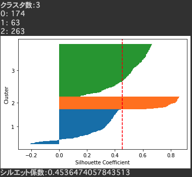 シルエット分析とは以下の観点からモデルのクラスタリング性能を評価する方法です。- クラスタ内のサンプルは密であればあるほど=サイズが小さいほど良い(凝集度:α)