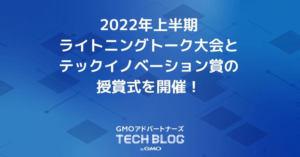 このテックイノベーション賞は『GMOアドパートナーズ連結各社のエンジニアの技術力向上、 ブランド力強化に貢献したメンバーを表彰する』という意図で、GMOアドパートナーズ連結各社のエンジニア部門強化のためのプロジェクト「テックイノベーションプロジェクト」が企画したものです。 具体的には、期間中のテックブログのアクセス数、社内勉強会や社内LT大会での登壇回数、外部活動実績などをもとにポイントを集計し、上位三名を半年に一度表彰します。