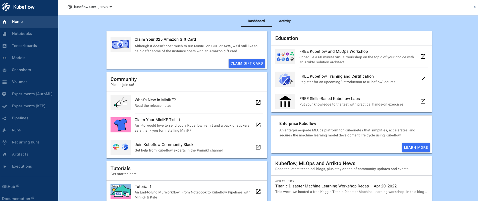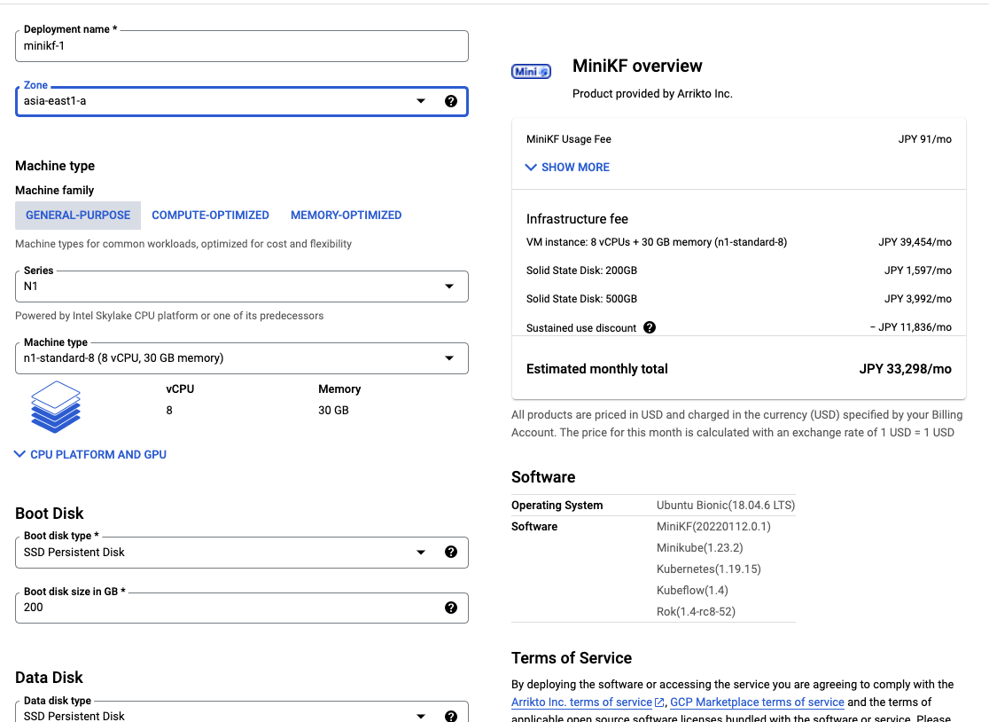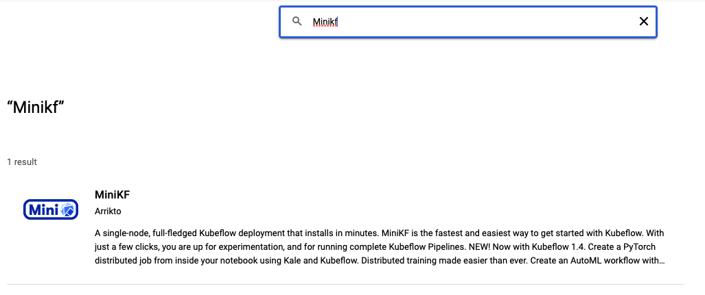MiniKF は名前のとおりクラウド(GCP/AWS など)に一つの instance でKubeflow を自動的に環境構築するツールです。MiniKFを利用して数分間でWeb UIでKubeflowの環境構築ができるので大変便利です。MiniKFのインストール画面を探す
