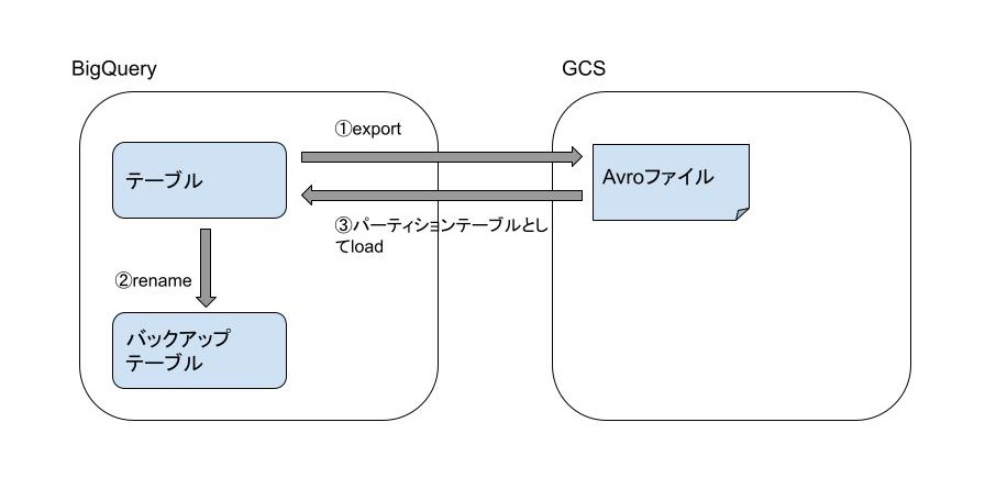 bq extract --project_id="プロジェクトID" \ --destination_format="AVRO" \ --compression="SNAPPY" \ "対象テーブル" "保存先GCSファイルパス" |