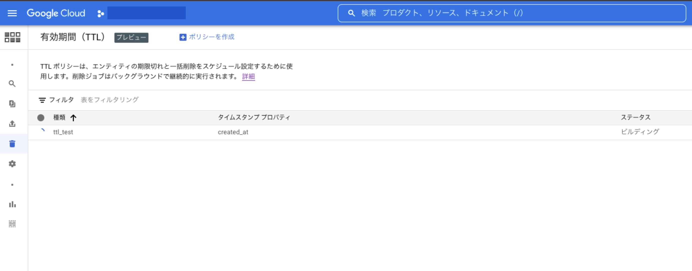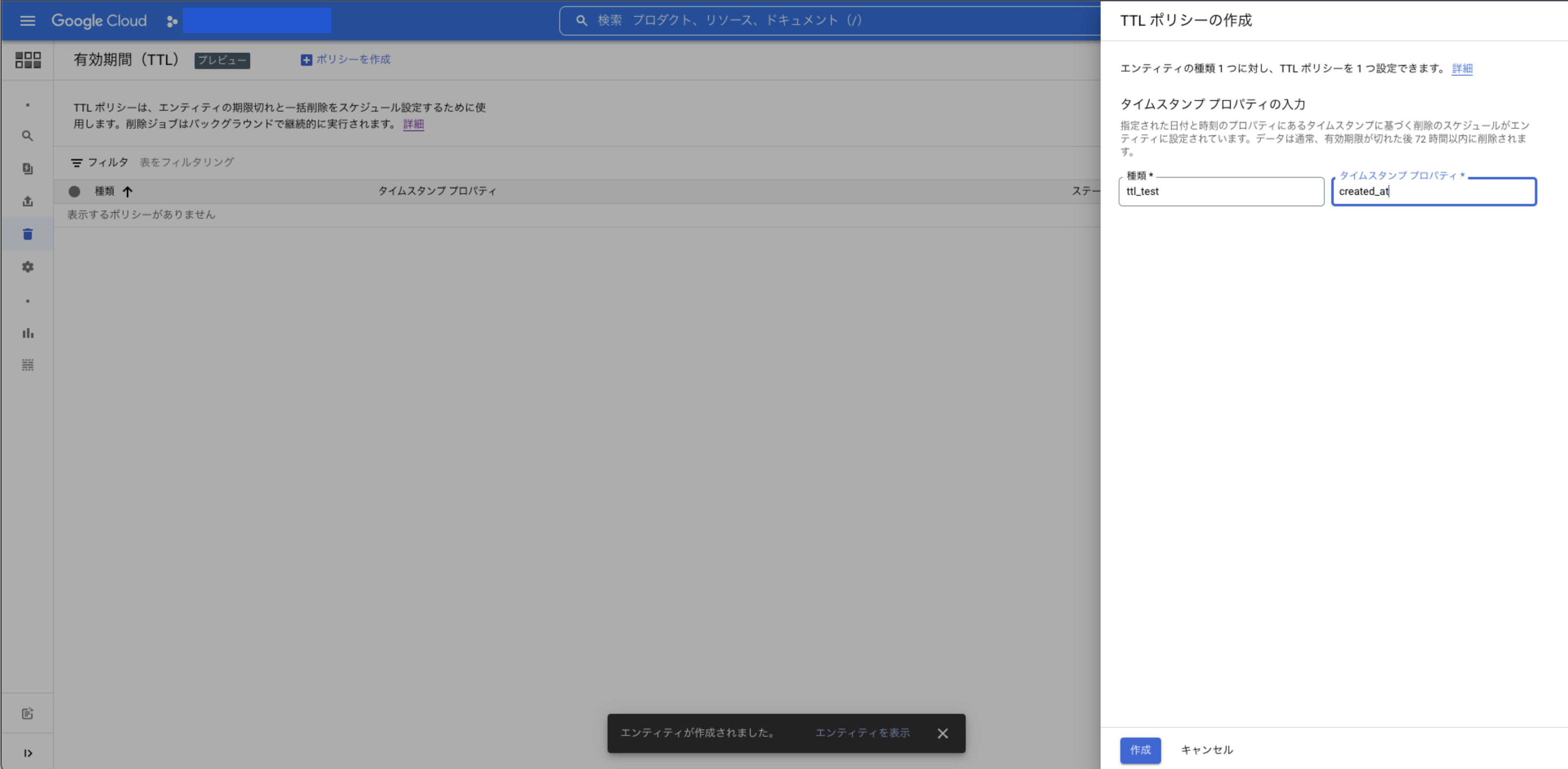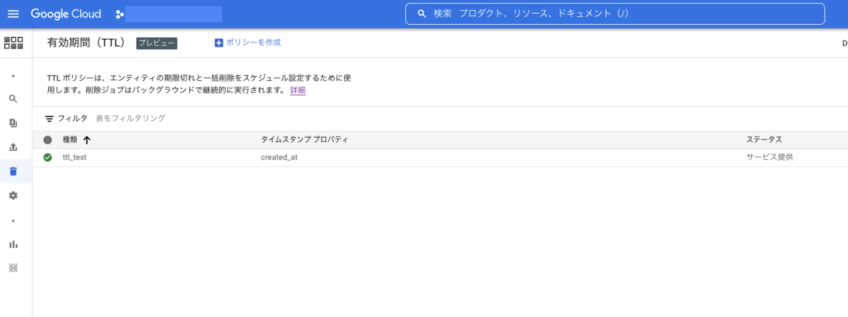TTL(Time To Live)はざっくり言うと有効期限(TTL)ポリシーを設定することで有効期限が過ぎたエンティティをGCP側で自動で削除してくれる機能になります。