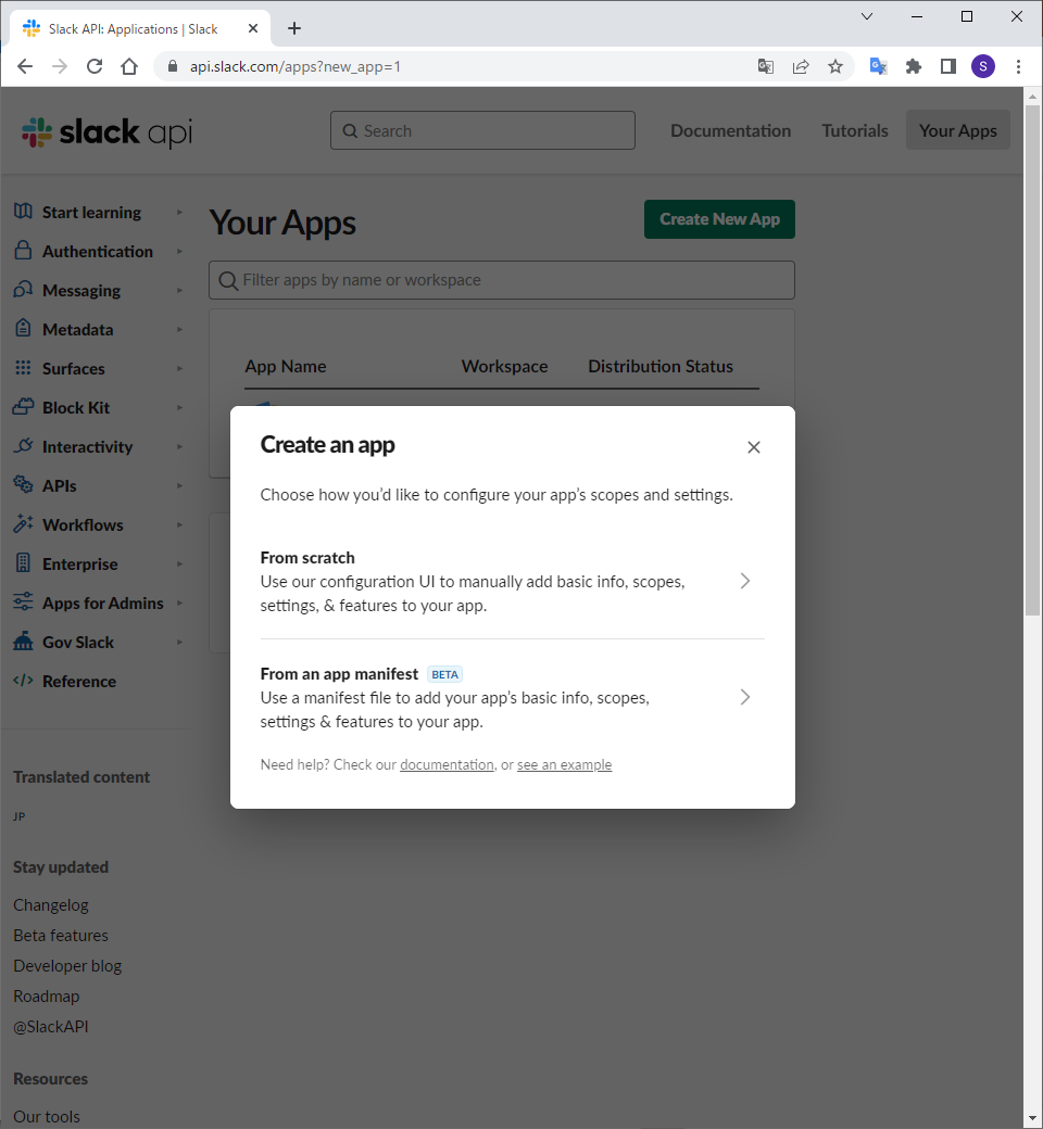 APIを使用するにはSlackアプリが必要なので作成します。