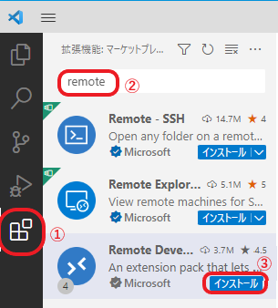 - 表示されたリストから「Remote Development」を選び「インストール」をクリック