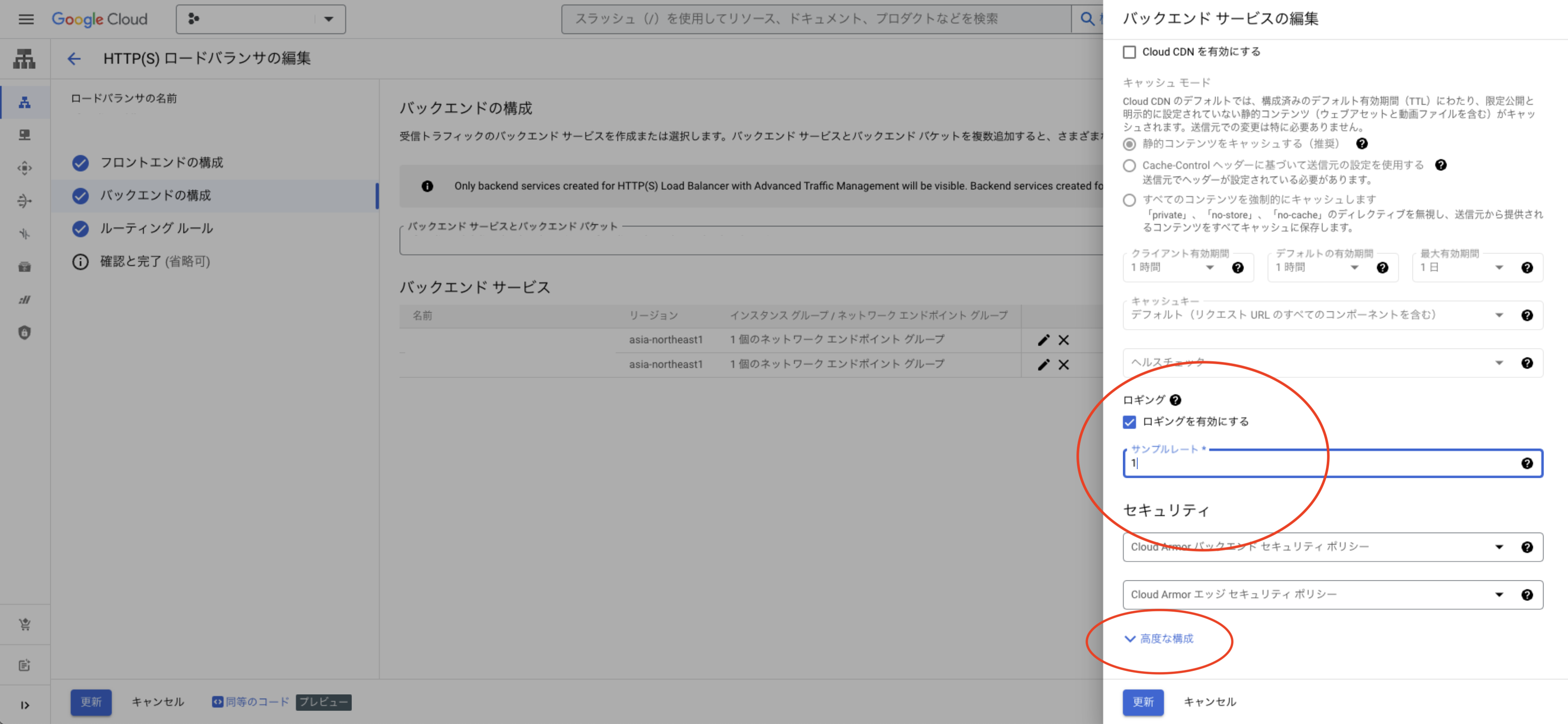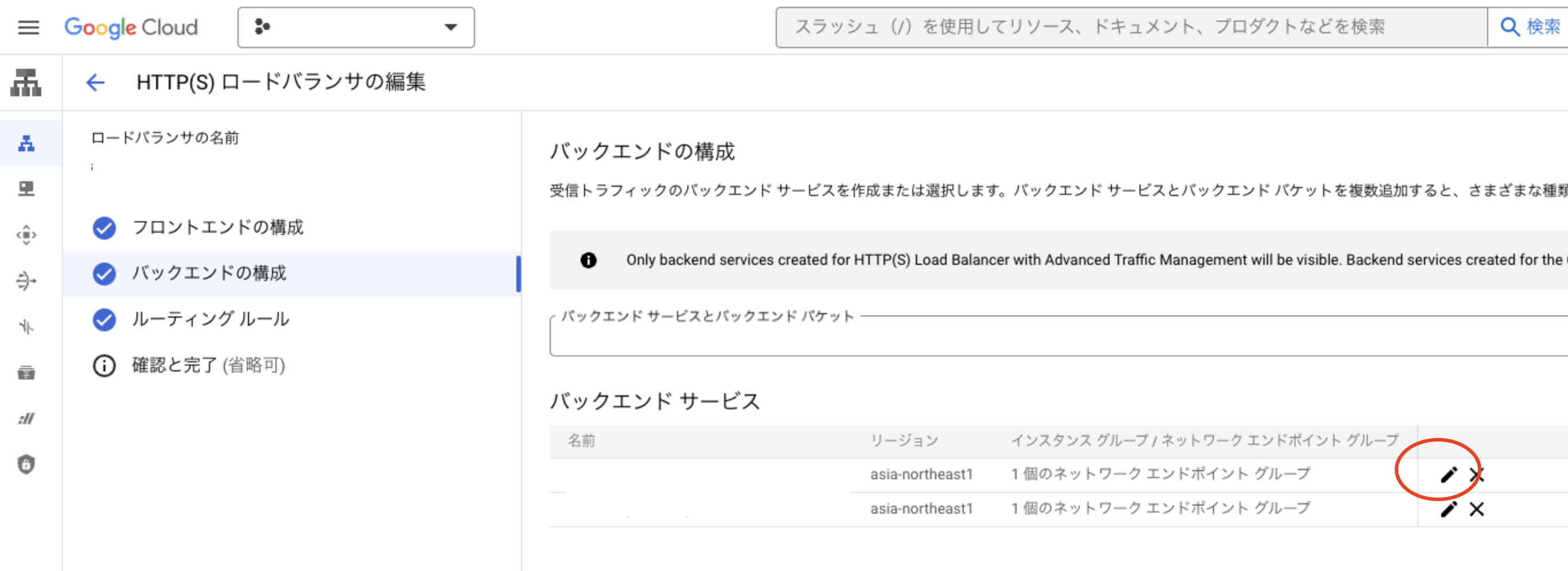3. 「バックエンド サービス」で対象バックエンドの鉛筆アイコンから「バックエンド サービス」の編集を開く。