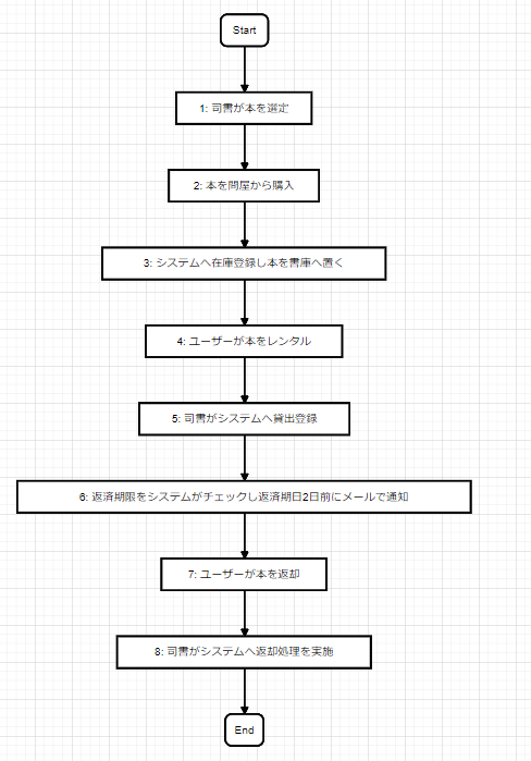 - 司書がシステムへ貸出登録