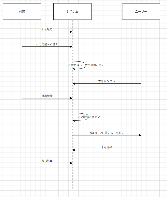 - 司書がシステムへ返却処理を実施