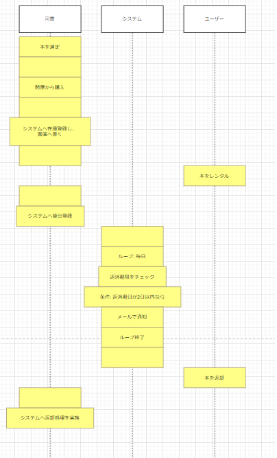 シーケンス図で出す事で各アクターのレーンを表現できるのではないか?という事でやってみました。