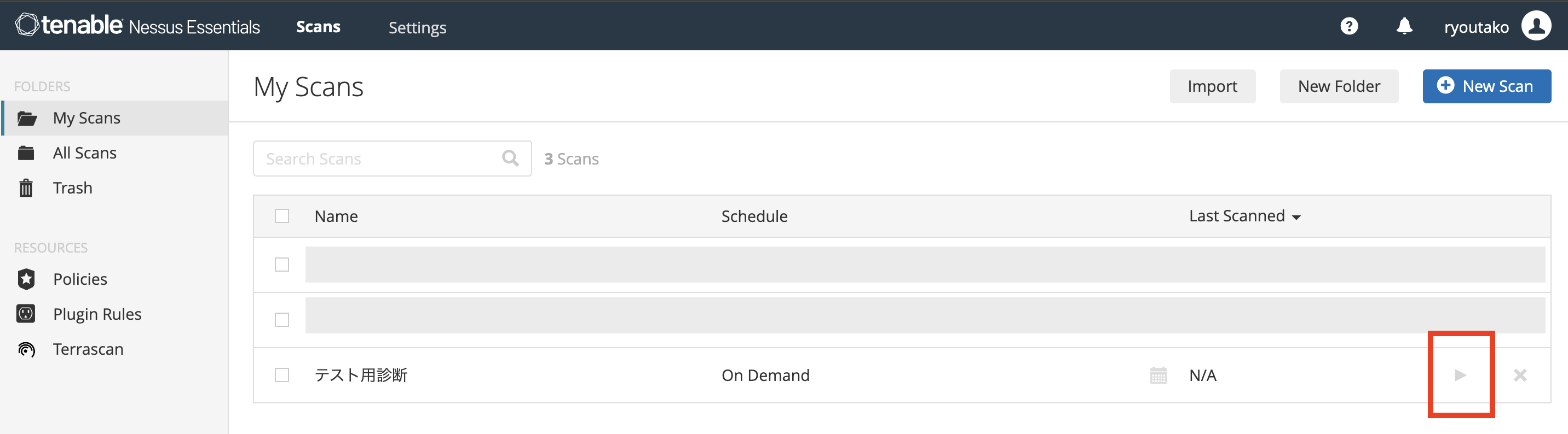 スキャンの設定が完了すると、「My Scans」に表示されます。