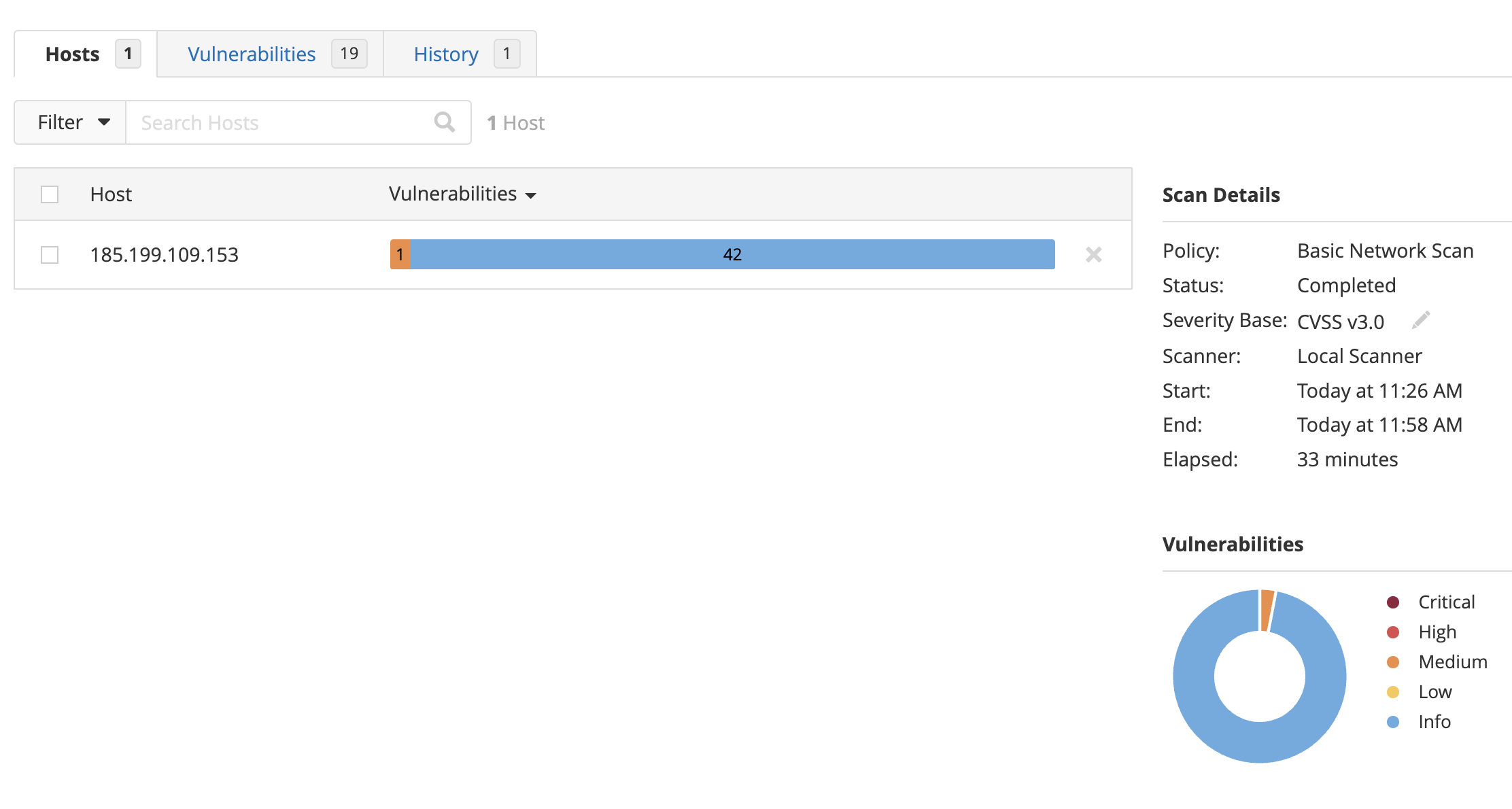 また、全体の脆弱性の割合も確認することができます。今回はかなり規模の小さいサイトを診断したため、そこまで脅威になる脆弱性は検出されませんでした。
