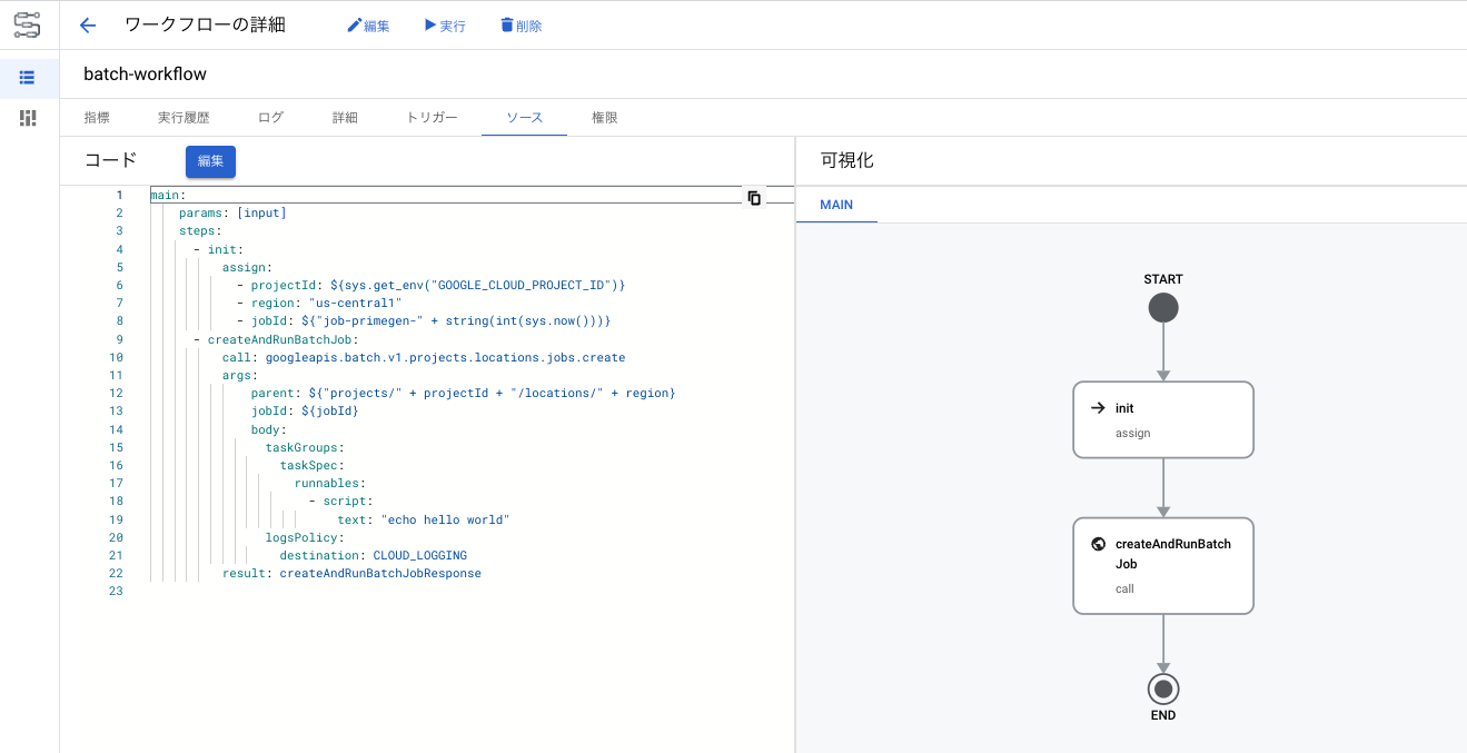 ここではWorkflowsからBatchジョブを作成&実行を試してみます。
